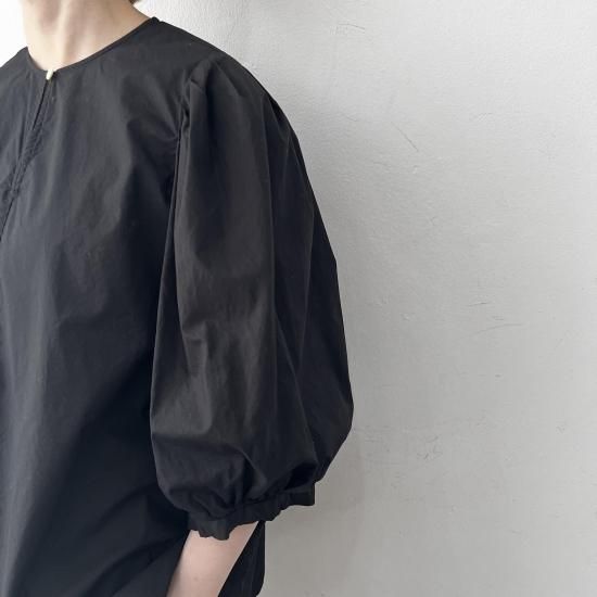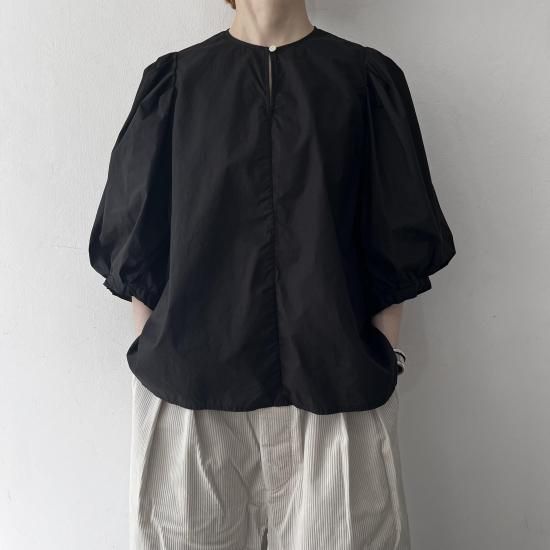 GARMENT DYE TYPEWRITER BIG BALLOON SLEEVE BLOUSE / Black
