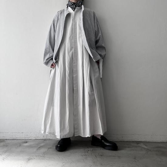 TOUJOURS Front Wide Tuck Shirt Dress / Smoke White